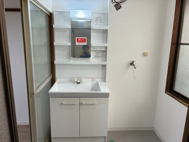 これだけも随分明るい雰囲気に。さらにビルトインコンロに洗面化粧台の入替