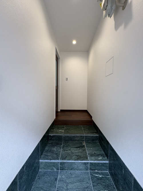 玄関ホールとテラスに大理石を敷き詰め、落ち着いた装いになりました。